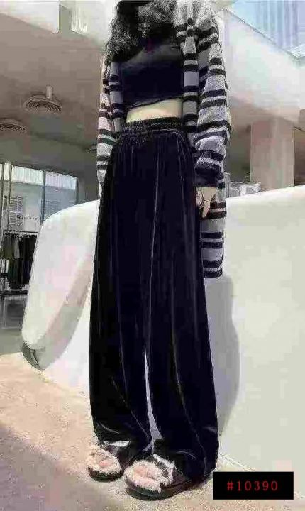 金丝绒秋冬新款垂坠感高腰显瘦百搭宽松高腰休闲开叉阔腿裤,独立包装,弹力大,码数S-4XL(1-7),数量331条,(货号0914#48)@_@