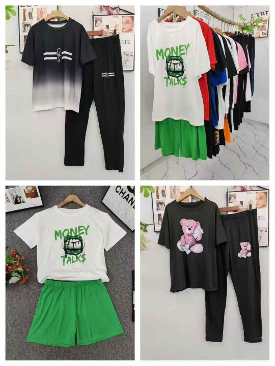 数量13200套,码数S一5XL,190克牛奶丝磨毛面料,面料柔软高弹力,全部独立包装,有长裤长袖套装,有长裤短袖套装,有短袖短裤套装,图案多,整杂图案,500起分货➕1