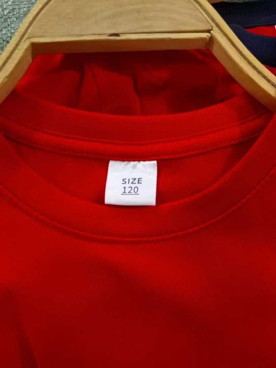 童装红色纯棉光板短袖T恤,数量564件,尺码110--160,后领包边到肩,十件一包装,有码数清单,大货干净整洁
