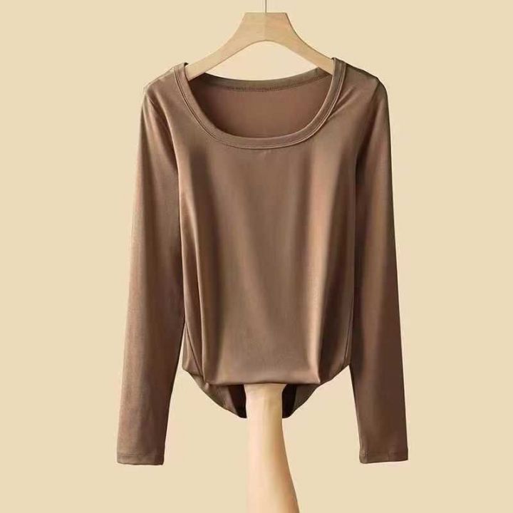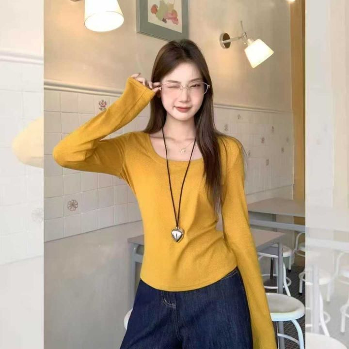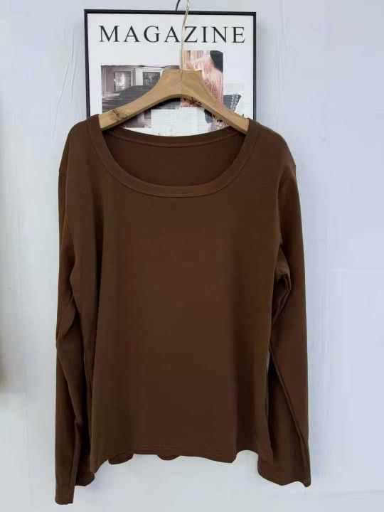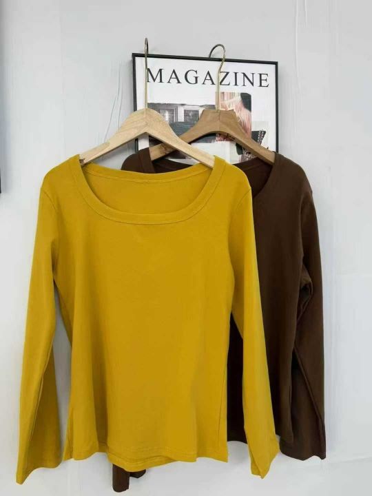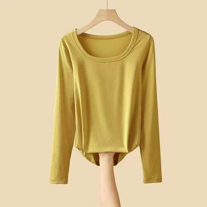纯棉方领内搭打底衫新款女U领长袖t恤春秋冬季百搭修身上衣,带弹力,数量343件,S-3XL,独立包装,货品干净。
