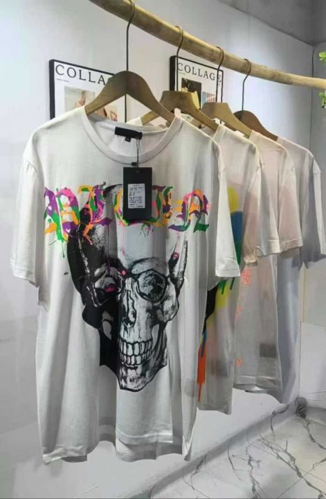 数量164件左右 码数M一5xL ,全部原包装原吊牌,纯棉丝光棉棉面料,高品质,骷颅头个性印花,可入实体店