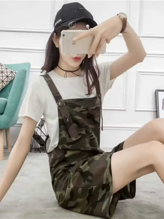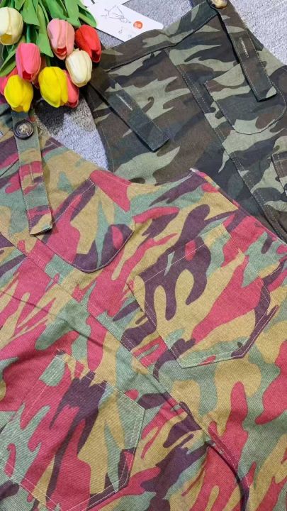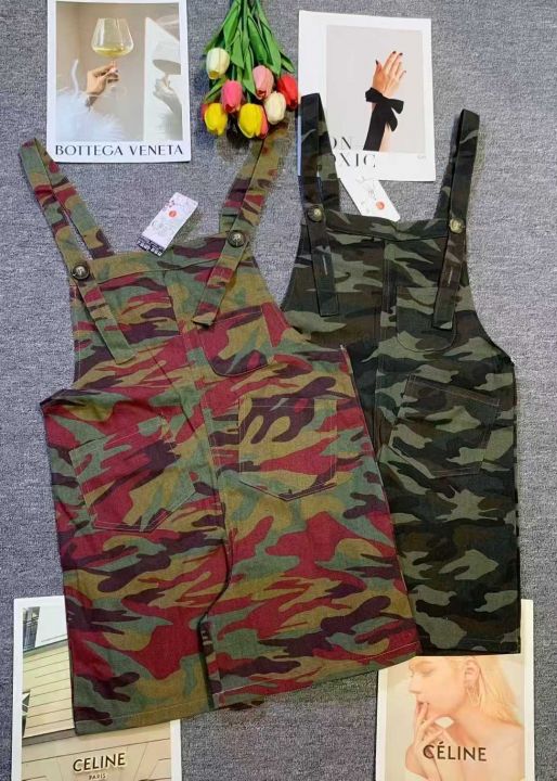 上新全清:6.8一件复古迷彩多口袋设计别致背带短裤,[...