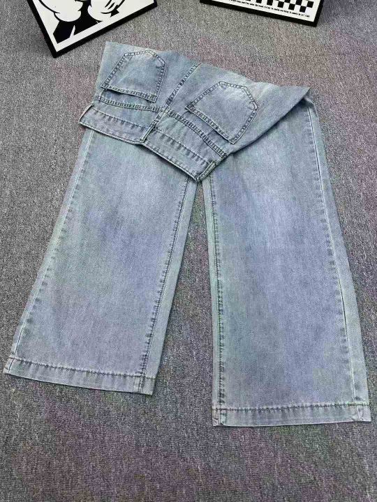 夏季薄款复古高街阔腿牛仔裤女ins垂感高腰,单款单色...