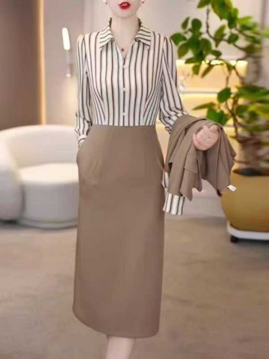 430件高级端庄气质两件套女2025秋季新款外套搭裙子修身高贵时尚套装,整款2个色,码数1-4码,独立包装