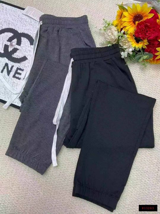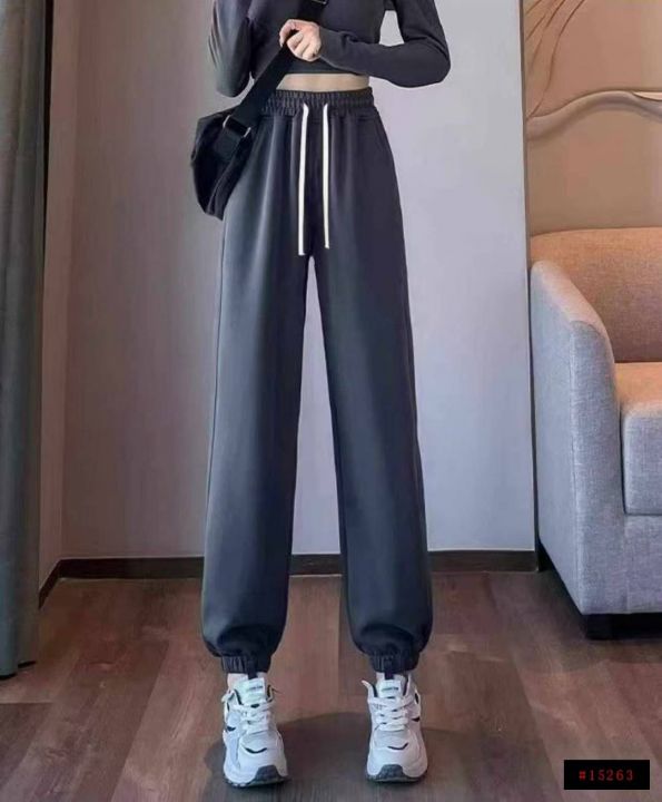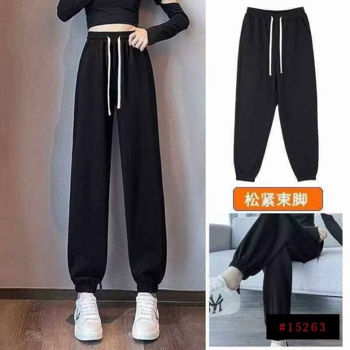 春秋新款品牌外贸原单宽松净版百搭松紧腰束脚纯棉休闲...