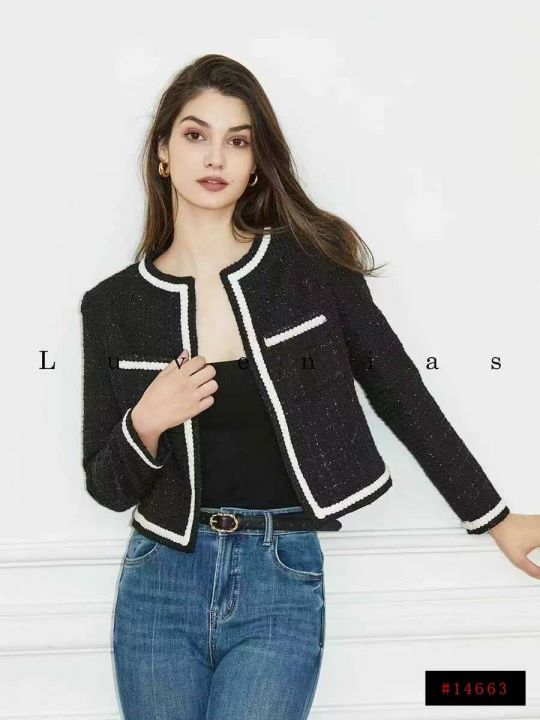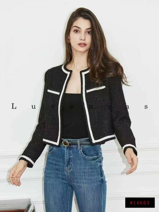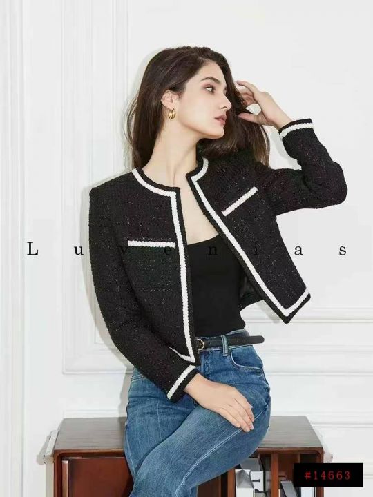 25.8清56件女小香风短款外套女黑色韩版显瘦小香风秋季新款高端轻奢气质上衣 码数S-M- L 独立包装带吊牌@_@