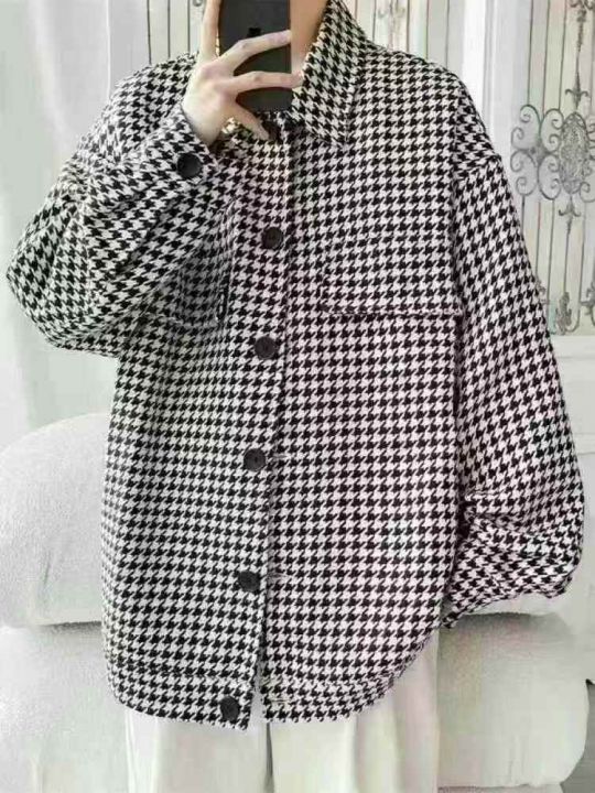 千鸟格ins潮牌工装外套宽松翻领,加绒大概1095,不加绒550,数量1645件,码数M-2XL,独立包装,全清6.9元,分货+0.5元(网络图仅参考)