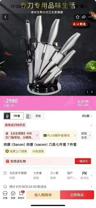 帅康七件套刀具全新未拆封,3Cr13mov不锈钢材质,刀身...