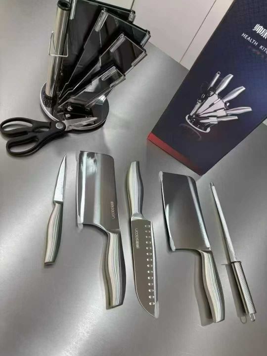 全新未拆封,3Cr13mov不锈钢材质,刀身加厚更耐用。套装包含菜刀、水果刀、剪刀等,适合家庭厨房使用。2000 套,一箱 12 套