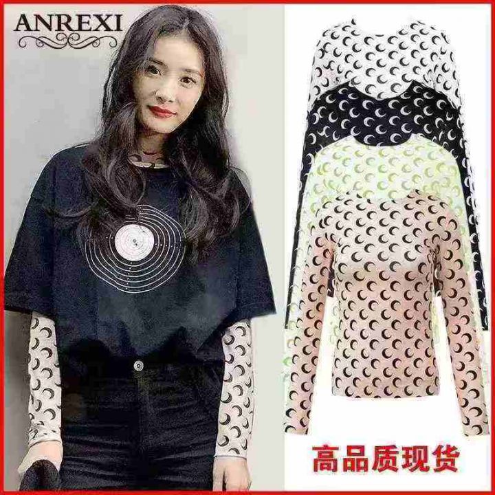 140件杨幂同款衣服弹力修身内搭t恤冰丝防晒月亮打底衫女上衣,尺码s-2XL,...