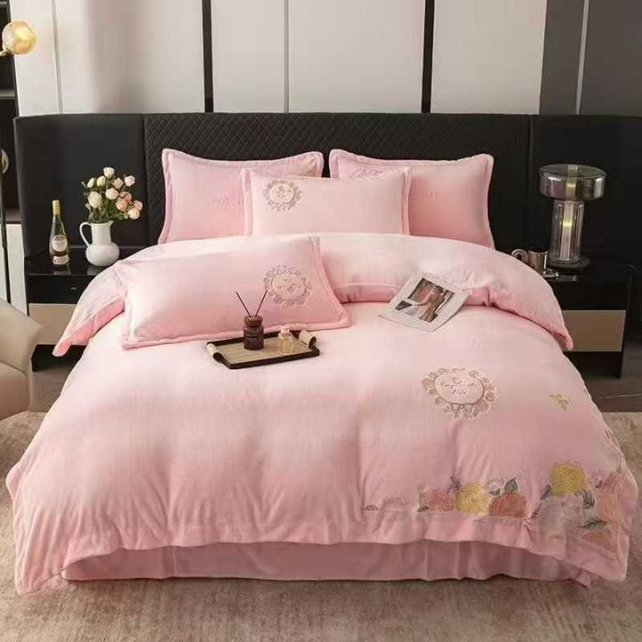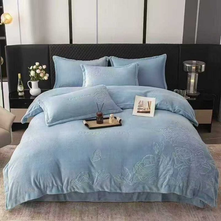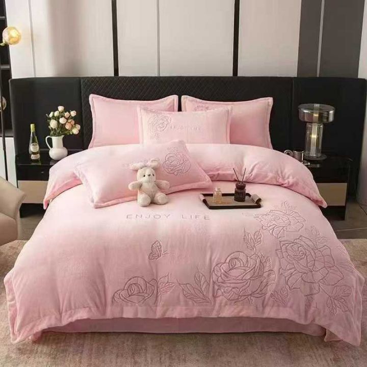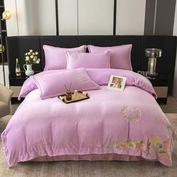现货花型,高克重消光牛奶绒绣花四件套