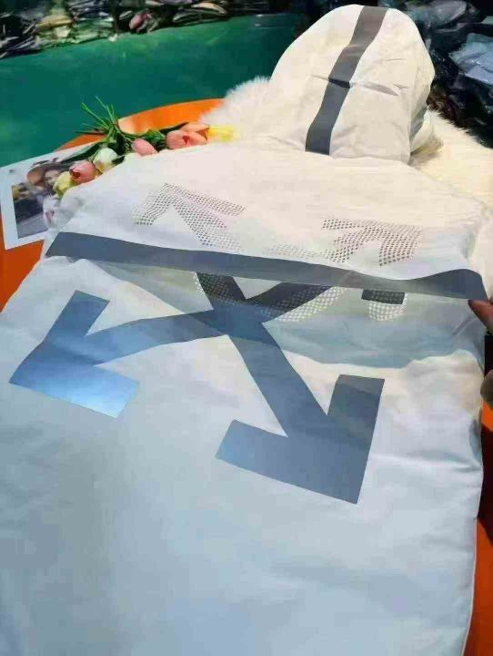 1500多件潮牌镂空设计反光印花男女同款羽绒服外套 尺码M-4XL (M码都可以穿到130斤)白色为主 ,全部独立拉链包装 全清48.8 分货➕1。 货号:24862