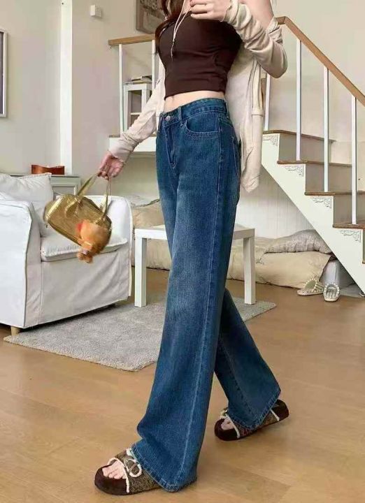 牛仔裤女秋冬复古蓝色小个子百搭宽松直筒裤长裤码数...