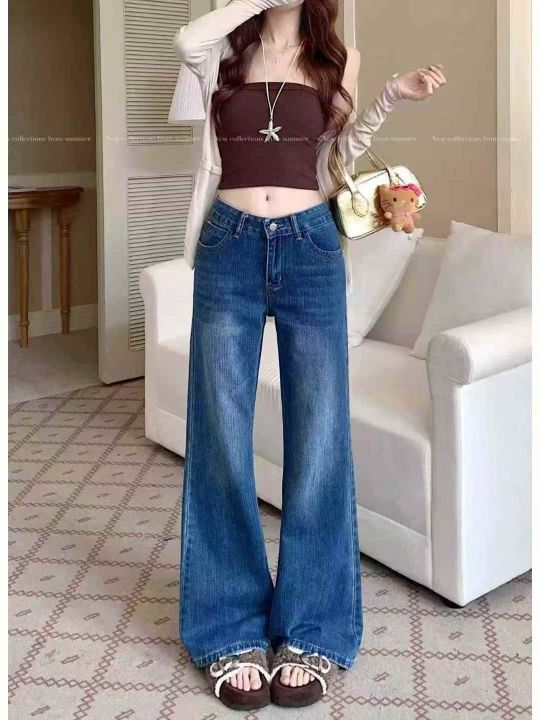 牛仔裤女秋冬复古蓝色小个子百搭宽松直筒裤长裤