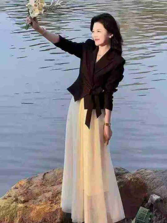 气质小西装套装79套12.8,西装外套➕网纱半身裙,绑带收腰,褶皱设计,裙子...