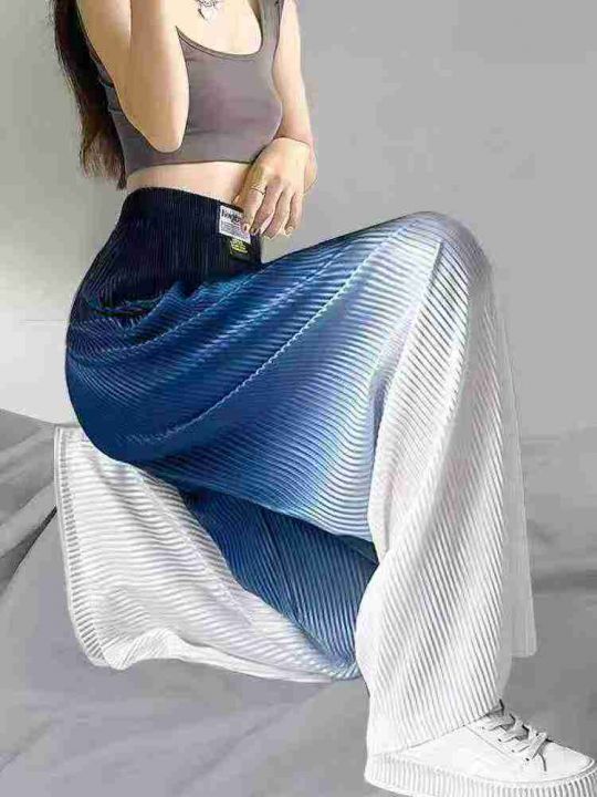 ☕️新款潮ins阔腿裤女褶皱渐变高腰垂感夏拖地裤693条全清8.8元分货+1 ,码数S到3XL,独立包装单款都是几乎蓝色,外贸热销款渐变色裤子[庆祝][庆祝]
