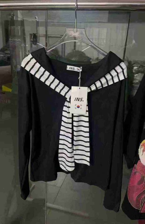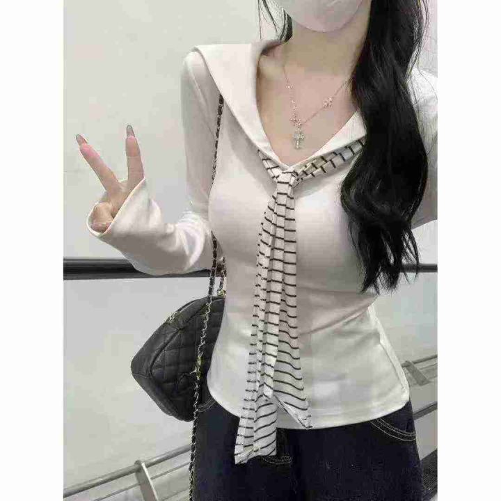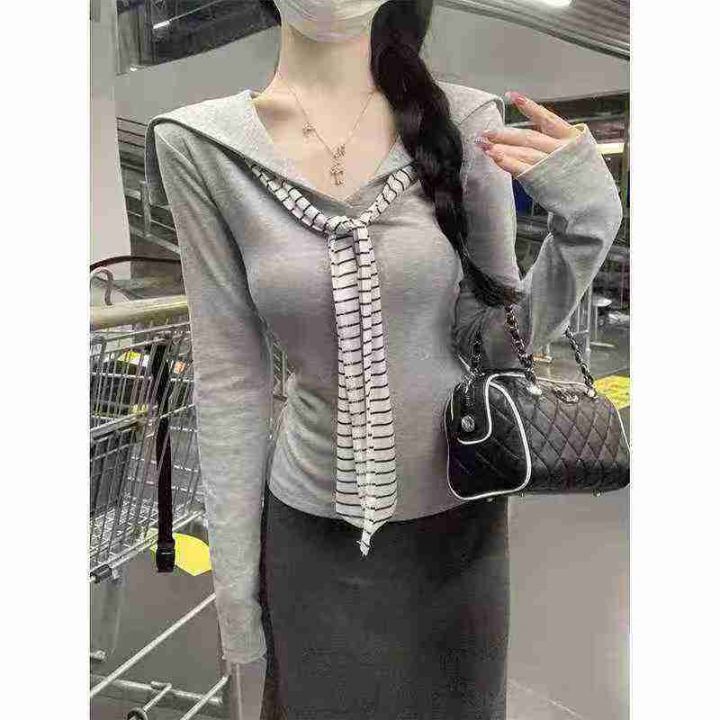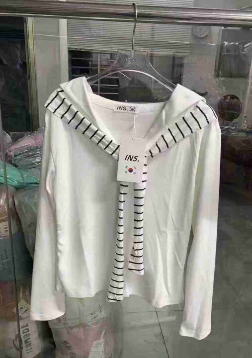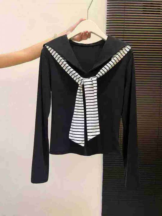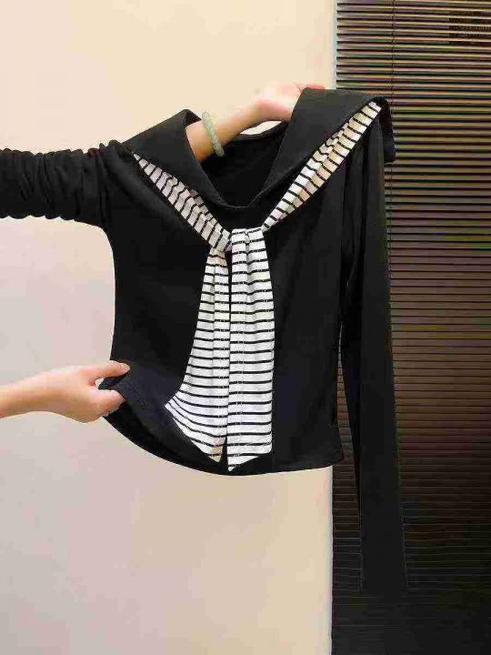 ☕️纯棉海军领飘带上衣秋季披肩长袖T恤辣妹打底衫 12...