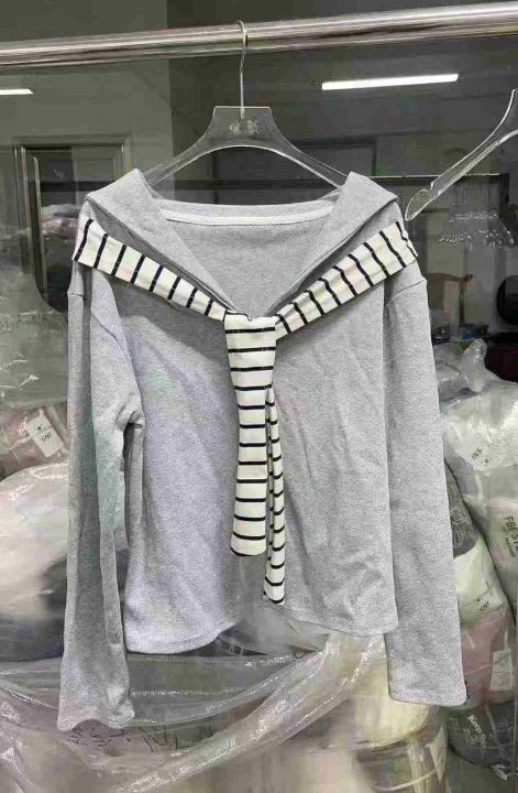 ☕️纯棉海军领飘带上衣秋季披肩长袖T恤辣妹打底衫 1200件全清12.8元,100件起13.8元,纯棉均码高弹力,5-6个色系,独立包装吊牌[庆祝][庆祝][庆祝]
