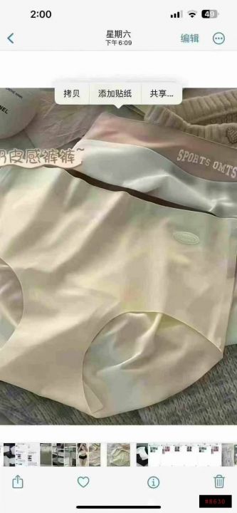 7 A桑蚕丝抗菌无痕冰丝内裤6000件,运动蜜桃臀,全面包裹不夹臀,材质舒适柔软,一体剪裁无缝衔接,工厂新货20件一包,尺码M~XL 货品干净整洁无瑕疵,全清福利价2.5元,分货2.6元@_@