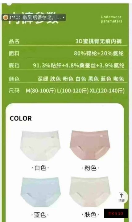 7 A桑蚕丝抗菌无痕冰丝内裤6000件,运动蜜桃臀,全面...