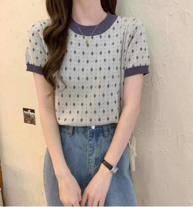 春夏季新款法式小香风减龄洋气独特别致设计感小众提花正肩短袖t恤针织衫,独立包装,均码年龄柔软舒适,338件,全清6.9元超低价秒杀!分货加一!