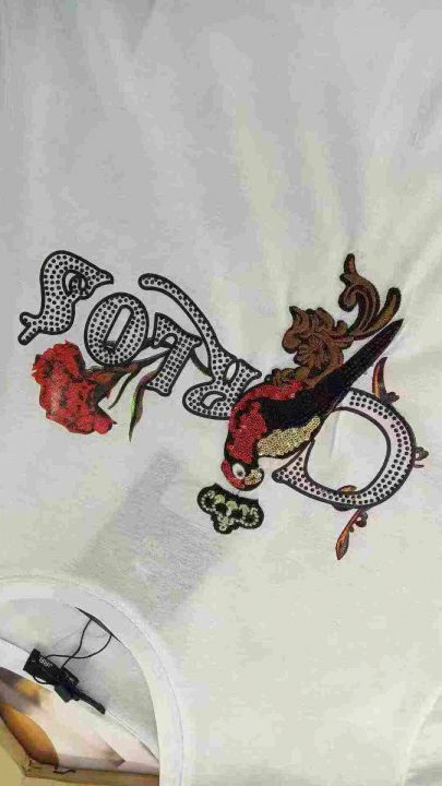 数量310件左右,码数M一4XL,两个图案(大鸟,小鸟图案)面料(丝光棉和纯棉200克)全部独立包装➕吊牌,实体店高品质,刺绣➕珠片➕烫钻一体,后领包条绝对高货