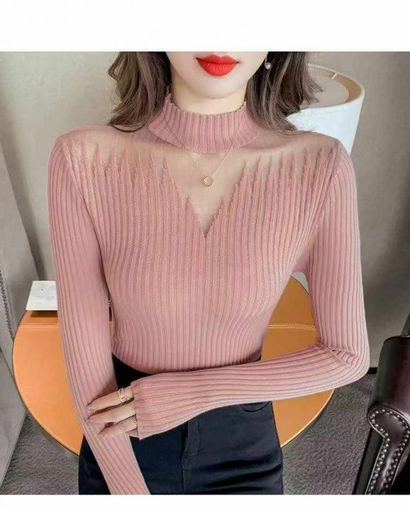秋冬新款网纱拼接弹力修身显瘦半高领打底洋气坑条包芯纱套头毛衣,独立包装,均码面料柔软舒适弹力大,200件,全清6.9元超低价秒杀!