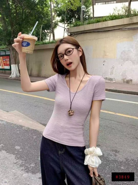 [月亮]:6.5清1240件[月亮]:韩系褶皱肌理感V领正肩T...