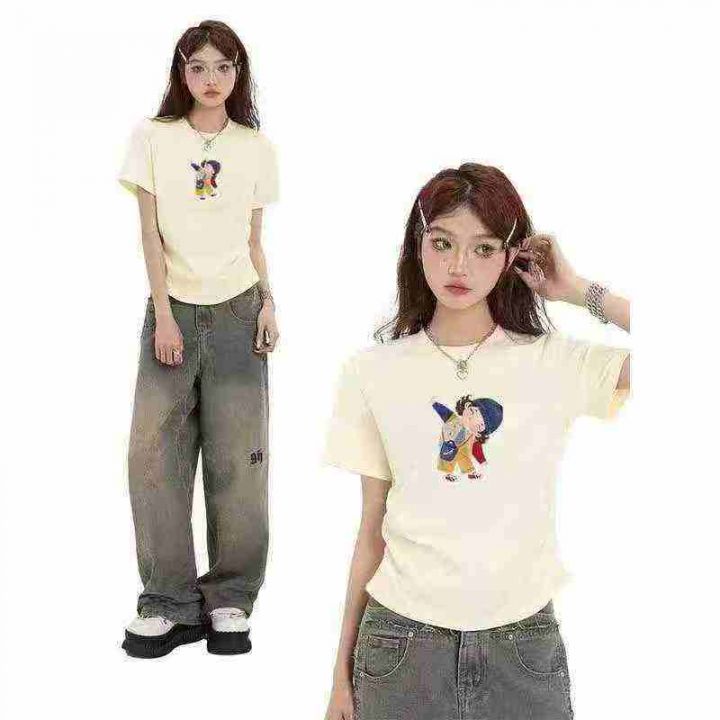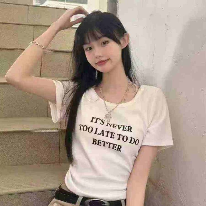 韩系vibe超好看抽褶收腰纯棉短袖T恤女夏季新款时尚百...