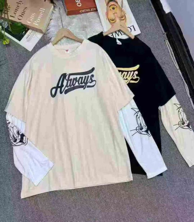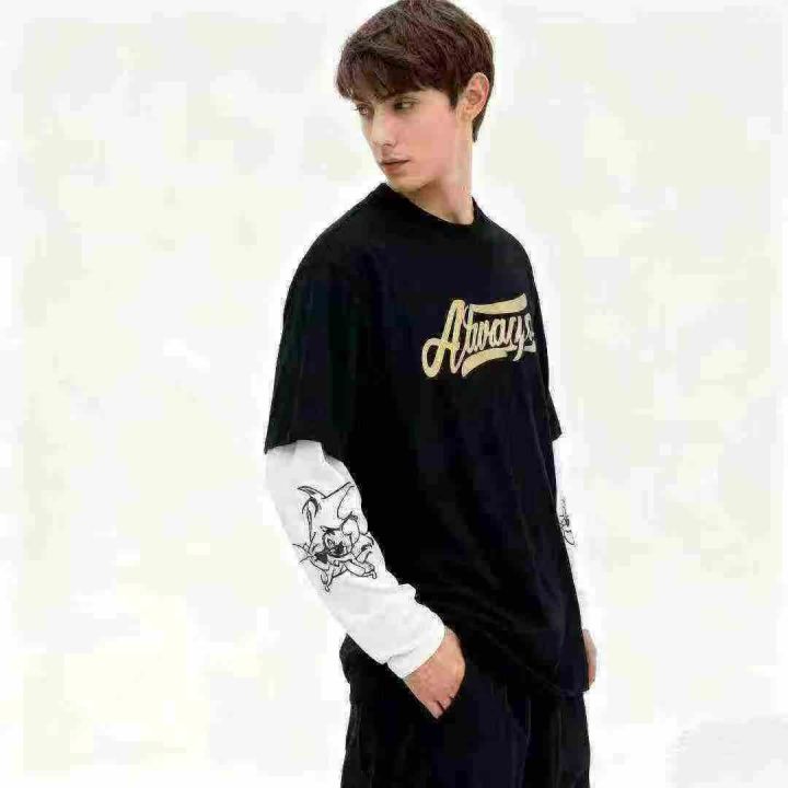 捡漏326件假两件长袖可爱图案t恤男潮牌嘻哈春秋棉T上衣,独立包装,码数M-2XL,分货加1,货号115#70
