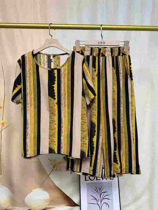2025夏季薄款女装凉爽透气圆领九分裤睡衣套装可外穿家居服,独立包装,数量241套,尺码2.3.4.5