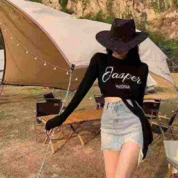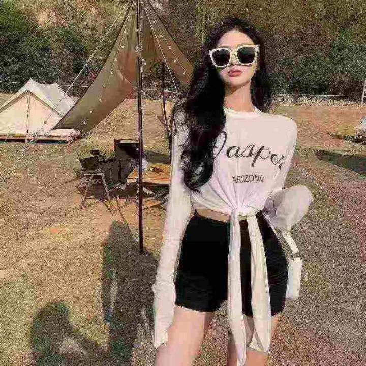 882件夏季热卖甜酷薄款开叉长袖正肩显瘦T恤女辣妹宽松百搭冰丝防晒罩衫上衣,独立包装,均码,全清价4.5元,分货加1