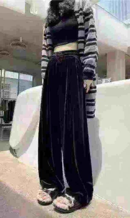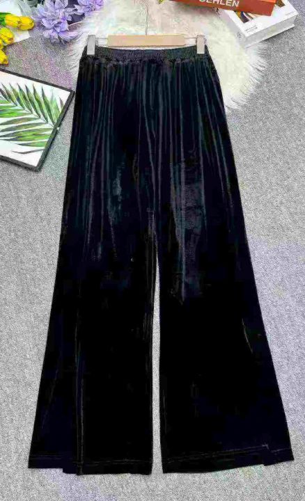 金丝绒秋冬新款垂坠感高腰显瘦百搭宽松高腰休闲开叉阔腿裤,独立包装,弹力大,码数S-4XL(1-7),数量331条,(货号0914#48)