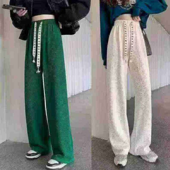 芊芊叶阔腿裤女休闲裤宽松裤韩版高腰遮肉直筒拖地裤百搭显瘦长裤,新款优质垂感芊芊叶阔腿裤,采用百褶纹理面料[强],手感柔软,抗皱有型,悬垂性好[鼓掌],字母抽绳时尚气质,松紧腰挑身材[666],显瘦百搭,穿上就是大长腿三七分完美身材[色],全新独立包装性价比,100/200件起混配➕1