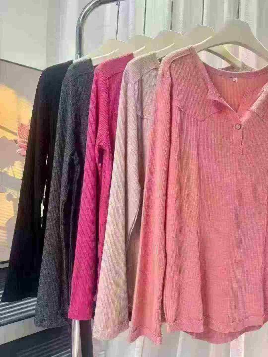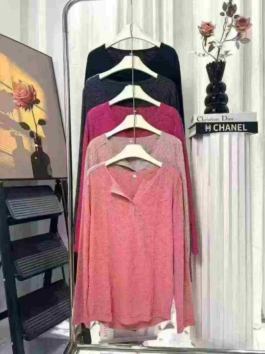 2230件韩系早秋新款宽松V领显瘦内搭打底衫上衣,含棉...