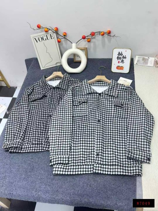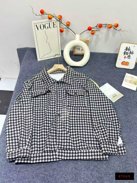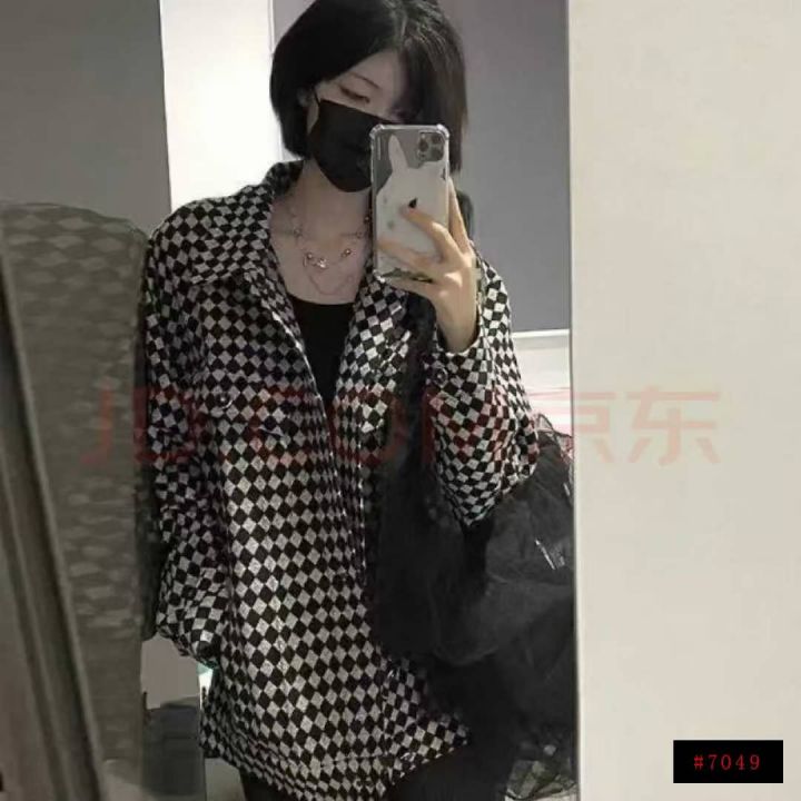 贝吉棋春秋款外套女ins美式复古棋盘格子polo领外套,数量1445件,码数m-2xl,独立包装,全清6.9元@_@