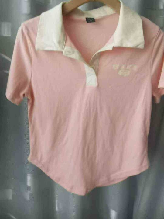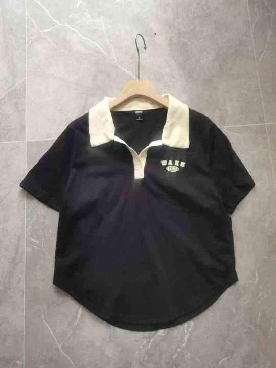 美式polo领短袖T恤女夏季新款设计复古辣妹修身显瘦短款上衣ins潮,s一3XL码,主要是黑色多,纯棉质量好,防水袋装,6880件。全清4.8块,分货加一