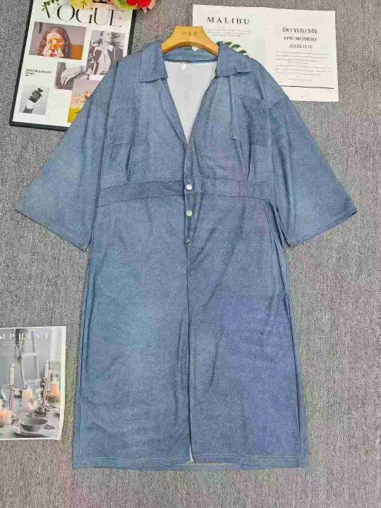 电商仓回收172件时尚休闲大码女装宽松仿牛仔连衣裙,码数4码,相当于XL。面料柔软丝滑,版型宽松,对身材包容度高。款号3460,独立包装,分货➕1