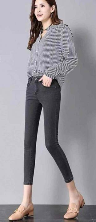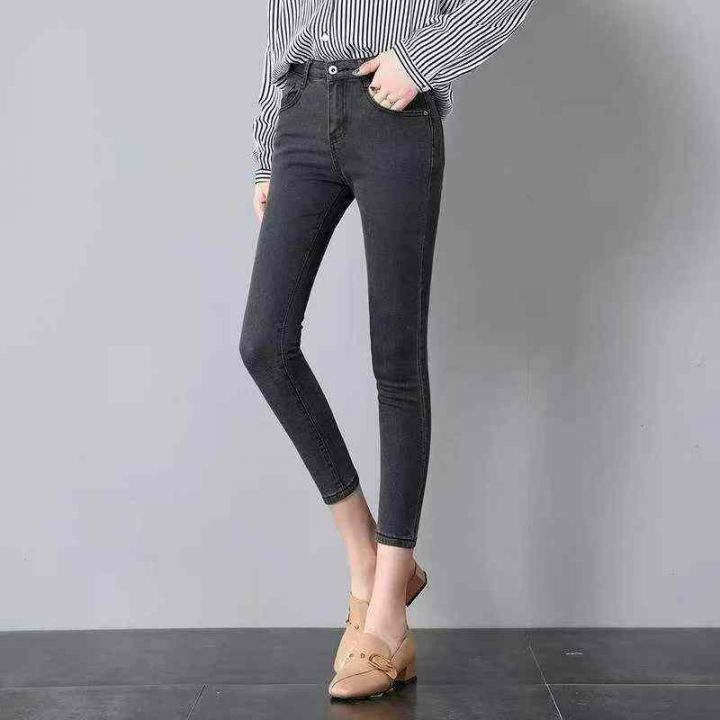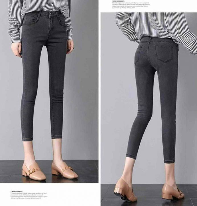 春夏季新款靓妹女装高弹力洗水棉网红复古牛仔小脚裤,...