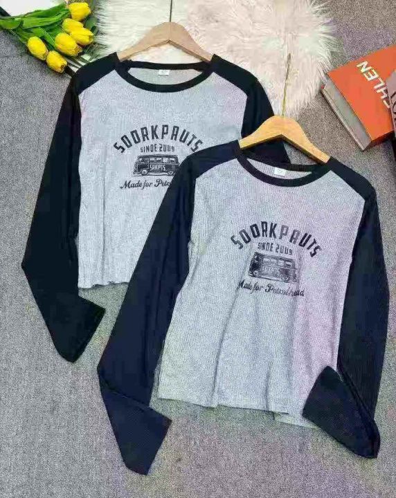 撞色插肩长袖修身显瘦螺纹辣妹T恤,独立包装,码数1-5码,高弹,整款两色,数量840件,货号1214#25
