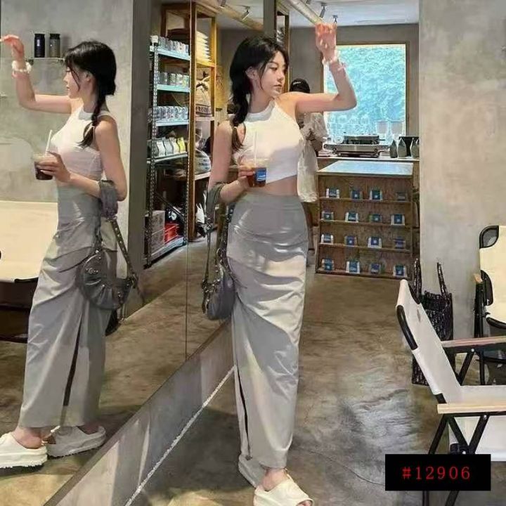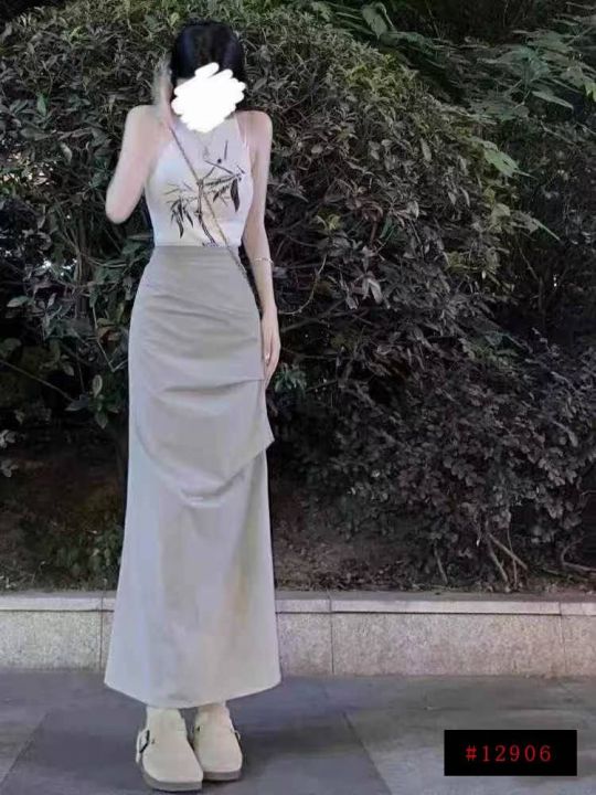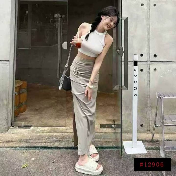 褶皱半身裙女夏季中长裙修身显瘦速干开叉半裙欧美ins辣妹工装裙,193件,码数slxl,独立包装,全清7.5元@_@