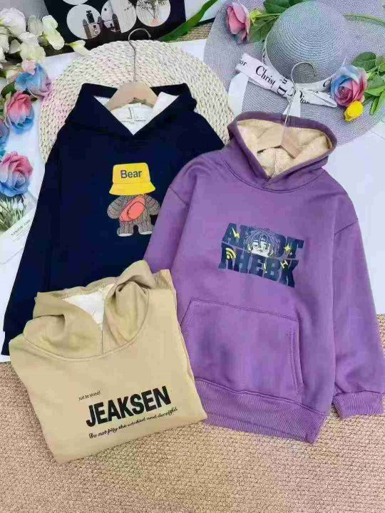 童装华棉加绒(BB绒)连帽卫衣,数量:1508件,码数:90-100-110-120-130-140-150-160,有独立包装,5.9元清。 货号:24862