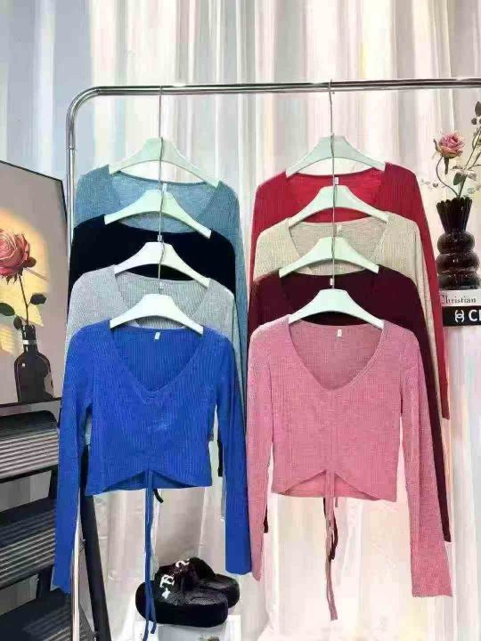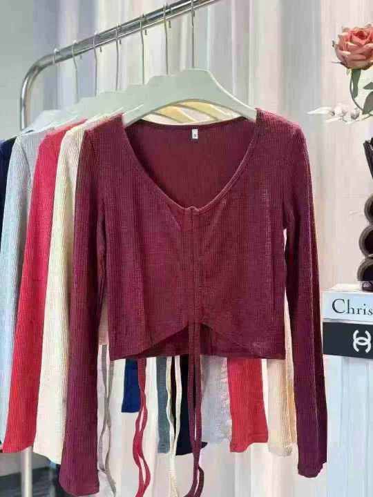 880件春装新款性感辣妹短款抽绳T恤长袖小众款高腰露脐装V领港风潮女上衣,抽绳设计可调节,含棉亲肤柔软高弹力,单款多色,尺码S-2XL,颜色相对均匀,独立拉链包装,几乎零瑕疵!福利秒杀价5.8