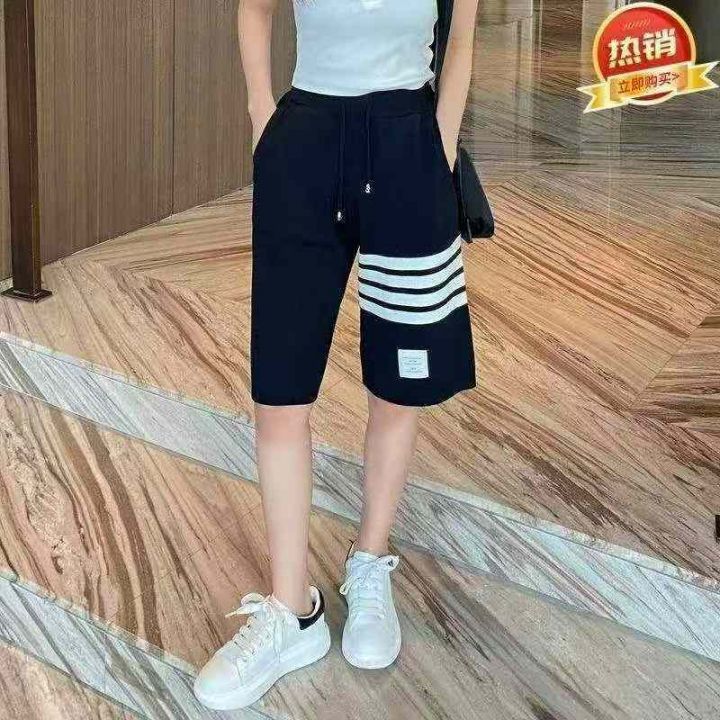 夏季新款男女同款网红抽绳直筒阔腿宽松冰丝针织短裤,...