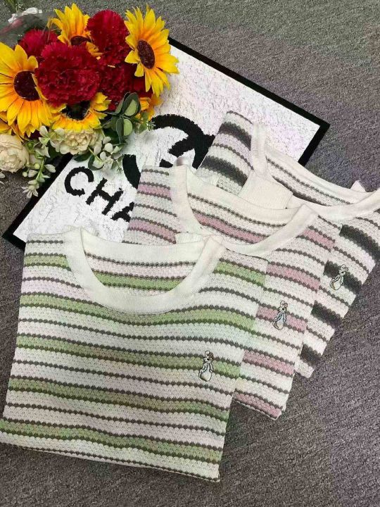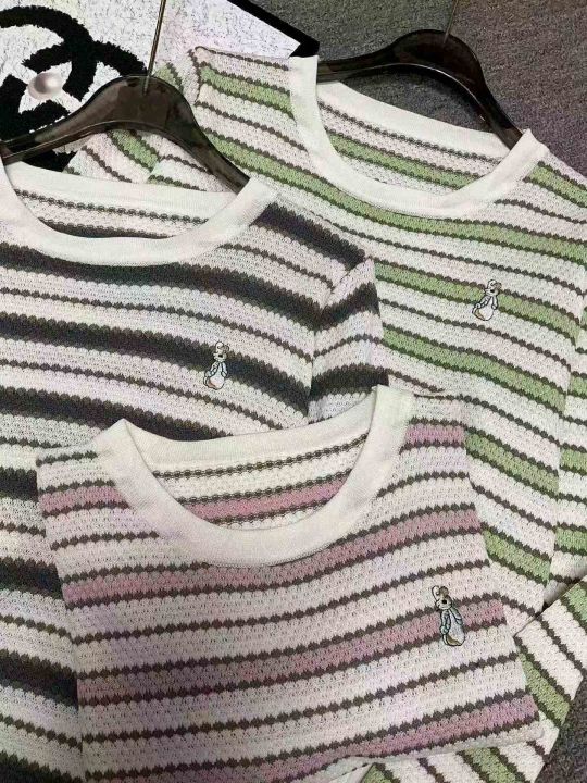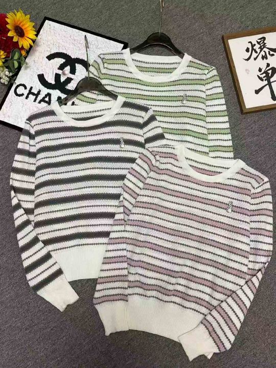 春秋新款刺绣小标韩系撞色条纹宽松百搭针织圆领套头毛衣,独立包装,均码面料软糯舒适弹力大,150件,全清7.9元超低价秒杀!