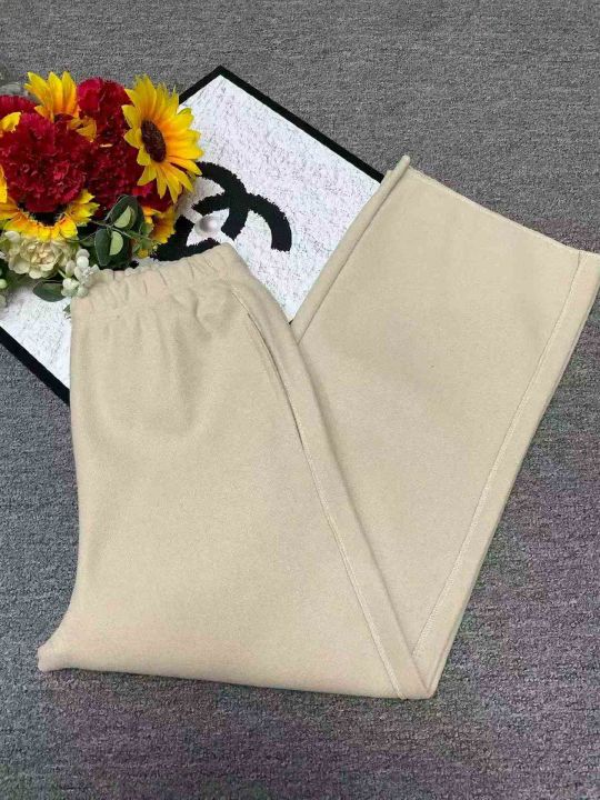 秋冬新款净版宽松简约松紧腰直筒阔腿毛呢裤,独立包装...