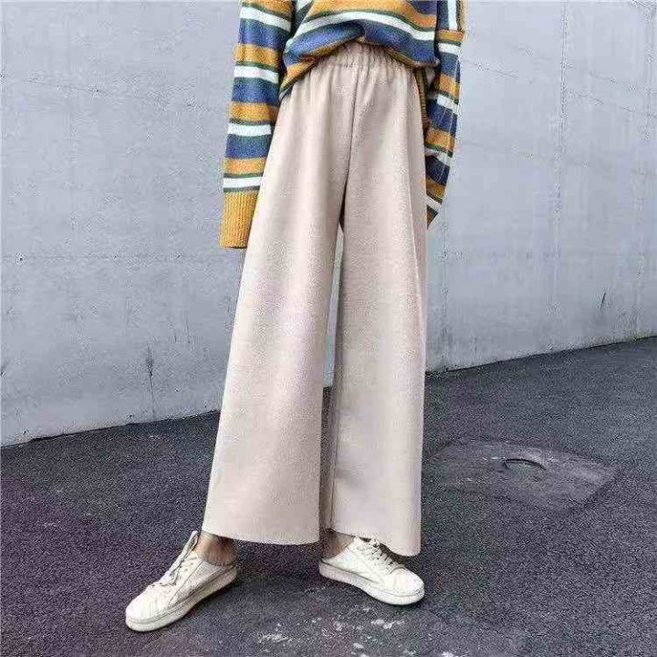 秋冬新款净版宽松简约松紧腰直筒阔腿毛呢裤,独立包装...