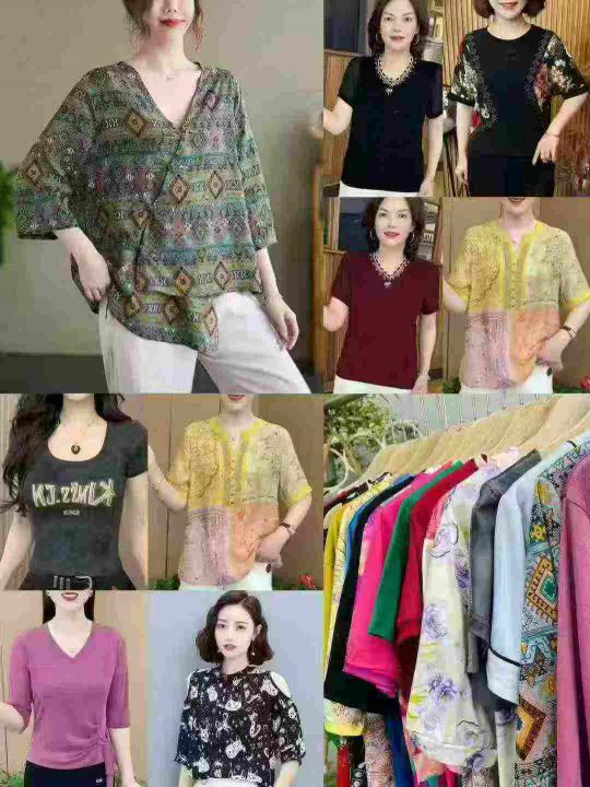 女装短袖上衣 ,数量:413件,码数:1码-5码相当于S-M-L-XL-2XL,有独立包装,2.5元清