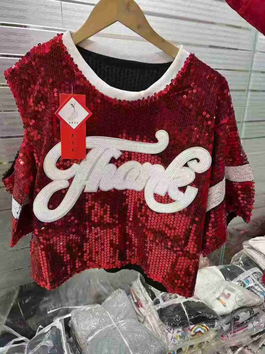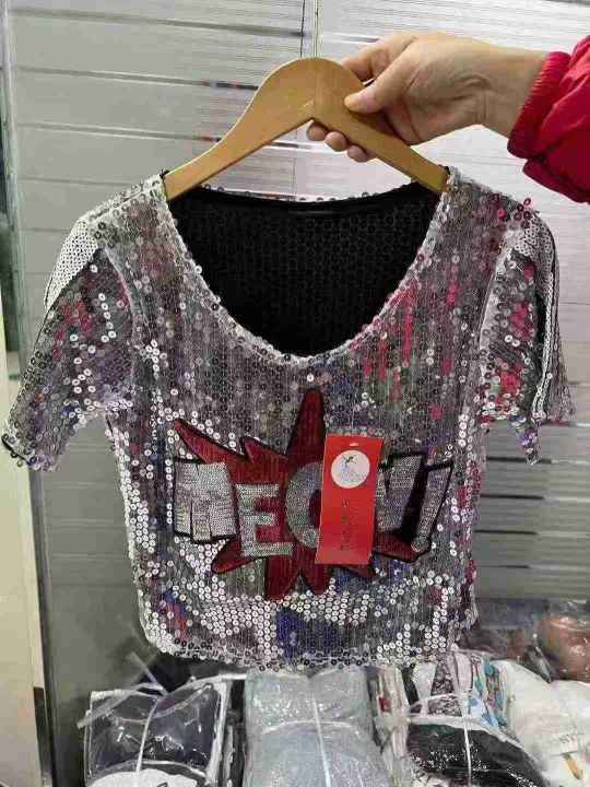 工厂新货,重工亮片女装上衣(长袖少,短袖多)6个颜色,数量990件左右,码数S一3xL,独立包装带吊牌,全清6.8,分货+1