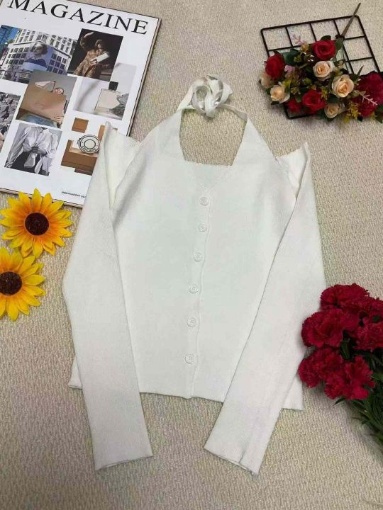 春秋新款韩系辣妹一字领露肩弹力修身显瘦挂脖针织毛衣开衫,独立包装,均码面料柔软舒适弹力大,550件,全清5.9元超低价秒杀!分货加一!